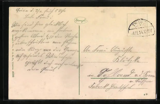 alte Ansichtskarte, gelaufen 1914 als Feldpost, guter Zustand