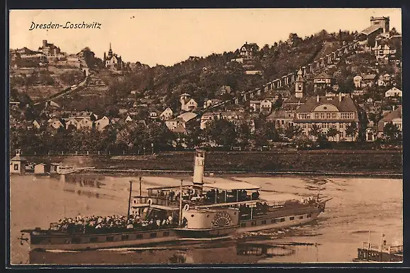 AK Dresden-Loschwitz, Uferpartie mit Elbdampfer Loschwitz