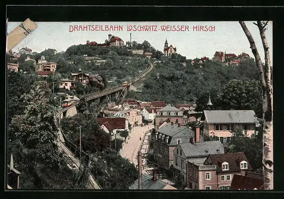 AK Dresden-Loschwitz, Weisser Hirsch mit Drahtseilbahn