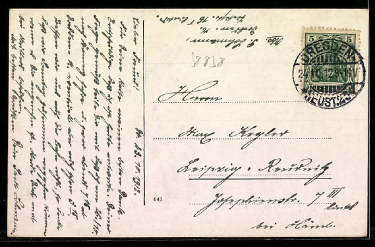 alte Ansichtskarte, gelaufen 1912, Stempelspur, guter Zustand