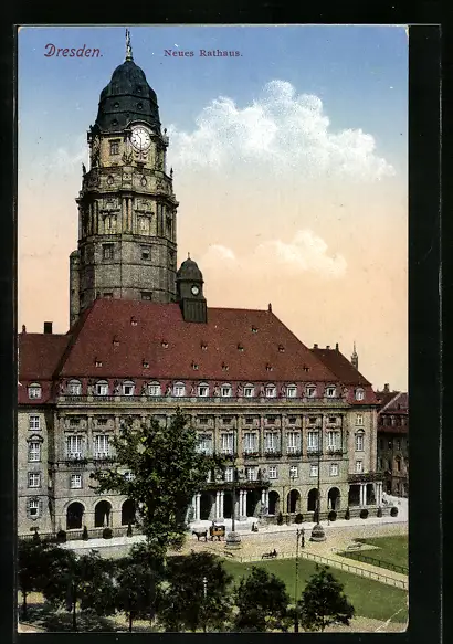 AK Dresden, Neues Rathaus aus der Vogelschau