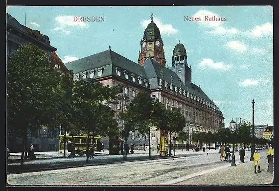 AK Dresden, Neues Rathaus mit Strassenbahn