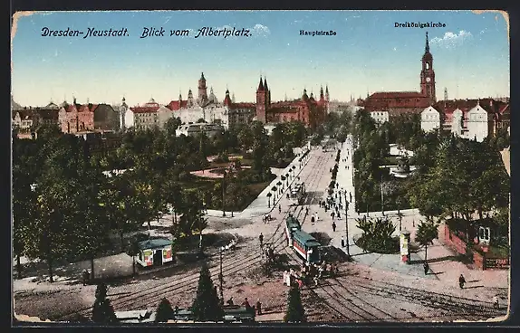AK Dresden-Neustadt, Albertplatz mit Strassenbahn