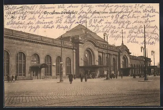 AK Dresden-Neustadt, Neustädter Bahnhof mit Reisenden