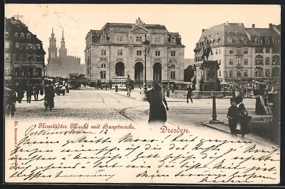 AK Dresden-Neustadt, Neustädter Markt mit Hauptwache