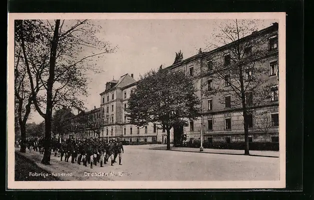 AK Dresden-Neustadt, Soldaten vor der Fabrice-Kaserne