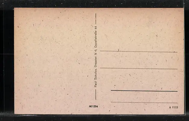 Personenbezogene Daten auf der Rückseite der Karte wurden durch blauen Textmarker unkenntlich gemacht. Die blauen Stellen sind auf die Vorderseite durchgeweicht und wirken sich negativ auf das Postkartenfoto aus