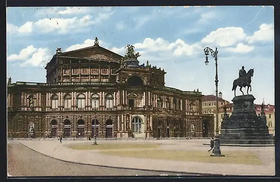 AK Dresden, Opernhaus mit Vorplatz und Denkmal