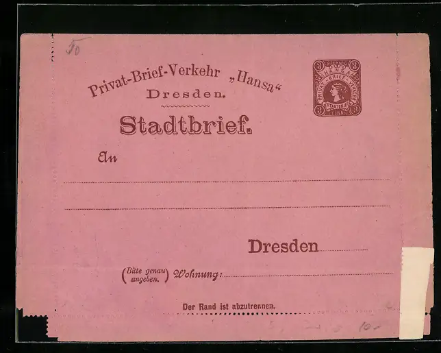 AK Dresden, Stadtbrief, Privat-Brief-Verkehr Hansa, Private Stadtpost