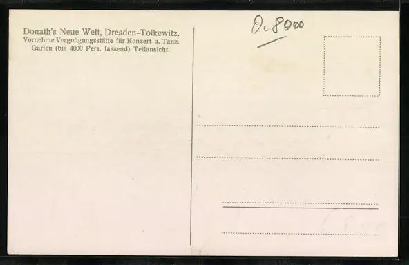 AK Dresden-Tolkewitz, Gaststätte Donaths Neue Welt, Teilansicht mit Garten