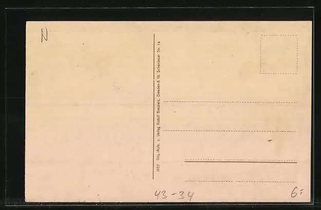 Personenbezogene Daten auf der Rückseite der Karte wurden durch blauen Textmarker unkenntlich gemacht. Die blauen Stellen sind auf die Vorderseite durchgeweicht und wirken sich negativ auf das Postkartenfoto aus