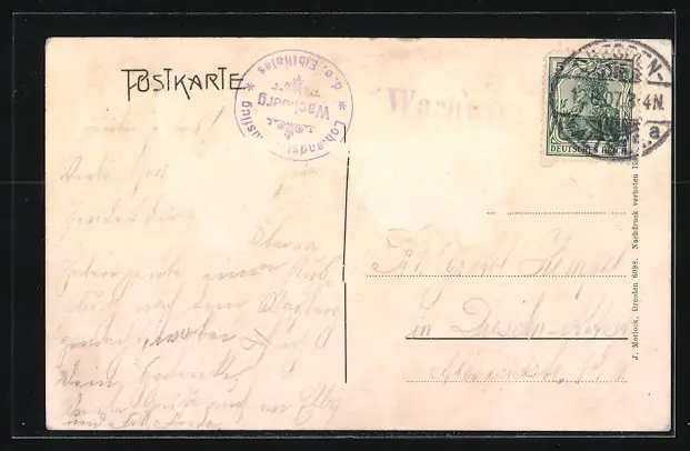 alte Ansichtskarte, gelaufen, rückseitig Oberflächenschaden, guter Zustand