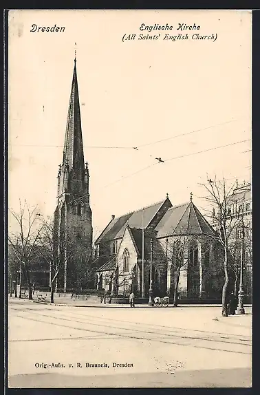 AK Dresden, Wiener Strasse mit Englischer Kirche (All Saint`s English Church)