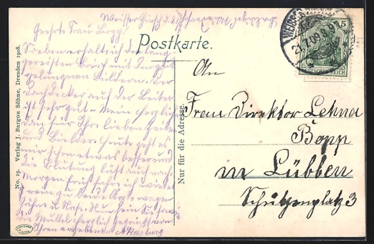 alte Ansichtskarte, gelaufen 1909, Abriebspur unten links, guter Zustand