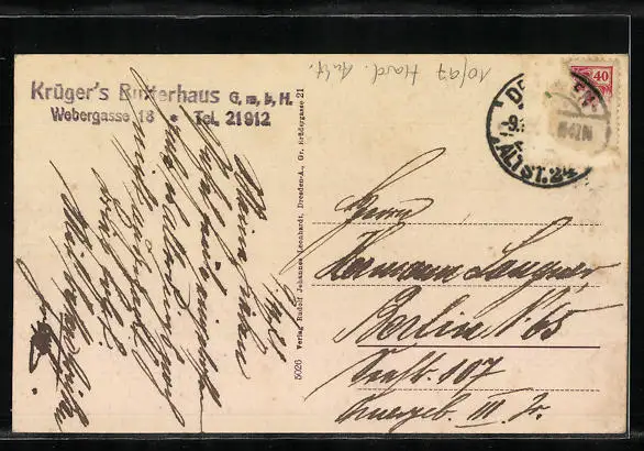 alte Ansichtskarte, gelaufen 1921, Briefmarke entfernt, rückseitig Oberflächenschaden, leicht fleckig, guter Zustand