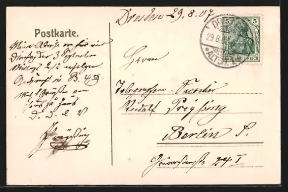 alte Ansichtskarte, gelaufen 1907, guter Zustand