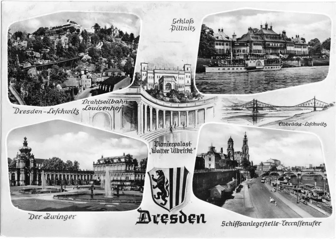 Loschwitz, Schloß Pillnitz, Zwinger, Terrassenufer, Pionierpalast, Elbbrücke Loschwitz