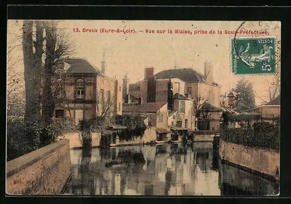 AK Dreux, Vue sur la Blaise, prise de la Sous-Prefecture