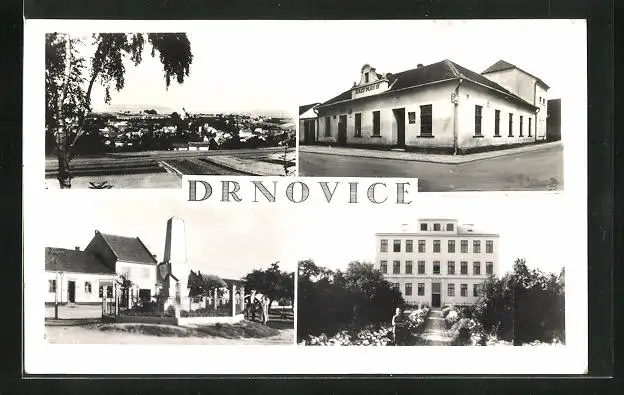 AK Drnovice, Teilansicht, Gebäudeansicht, Denkmal