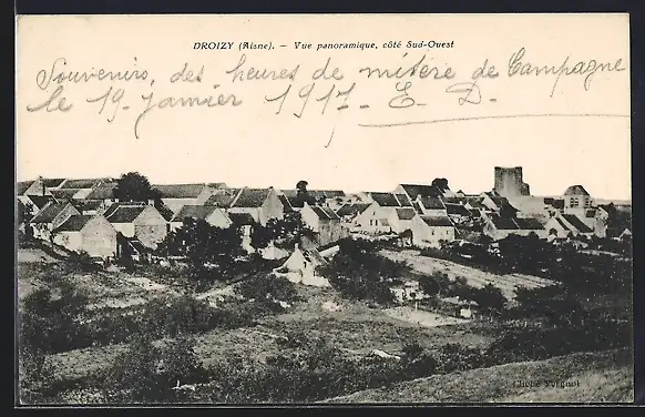 AK Droizy /Aisne, Vue panoramique, côté Sud-Ouest