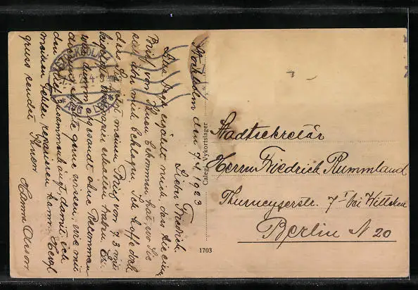 alte Ansichtskarte, gelaufen 1923, Briefmarke entfernt, guter Zustand