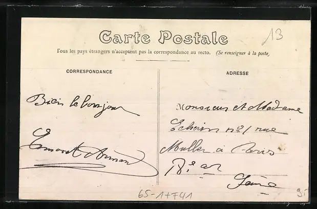 Personenbezogene Daten auf der Rückseite der Karte wurden durch blauen Textmarker unkenntlich gemacht. Die blauen Stellen sind auf die Vorderseite durchgeweicht und wirken sich negativ auf das Postkartenfoto aus