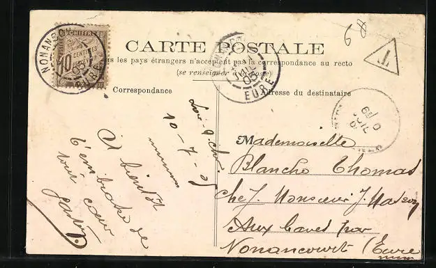 alte Ansichtskarte, gelaufen 1905, Eckknicke li. oben, Stempelspur, guter Zustand