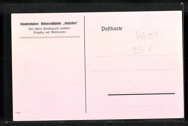 AK Droyssig, Gasthaus Staudenhainer Obstweinschänke Einsiedler