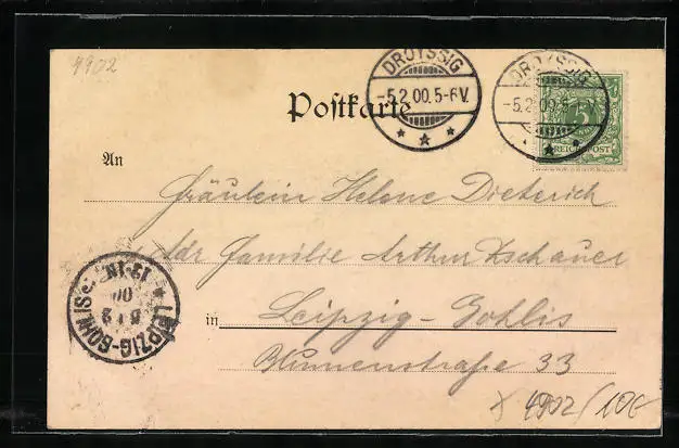 alte Ansichtskarte, gelaufen 1900, guter Zustand