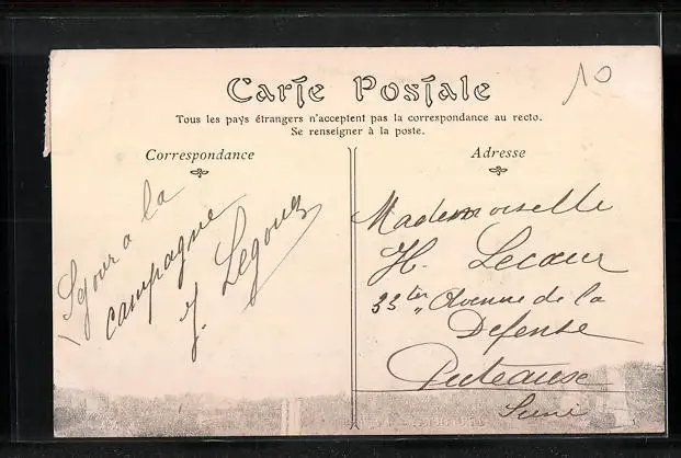 Personenbezogene Daten auf der Rückseite der Karte wurden durch blauen Textmarker unkenntlich gemacht. Die blauen Stellen sind auf die Vorderseite durchgeweicht und wirken sich negativ auf das Postkartenfoto aus