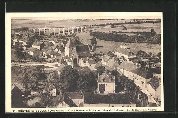 AK Druyes-les-Belles-Fontaines, Vue générale et le viaduc prise du Château