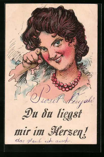 AK Du du liegst mir im Herzen!, Junge Frau mit Perlenkette