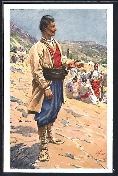 AK Dubrovnik, Mann in Tracht mit Zigarette