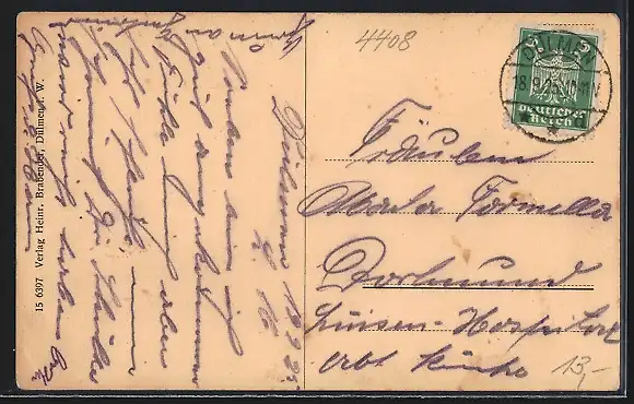 gelaufen 1925, Eckknicke li. oben u. re. unten, guter Zustand
