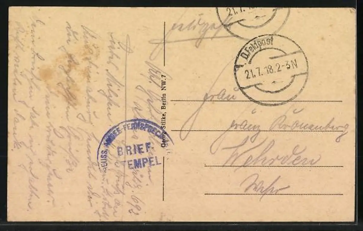 alte Ansichtskarte, gelaufen 1918 als Feldpost, Eckknicke links oben, sonst guter Zustand