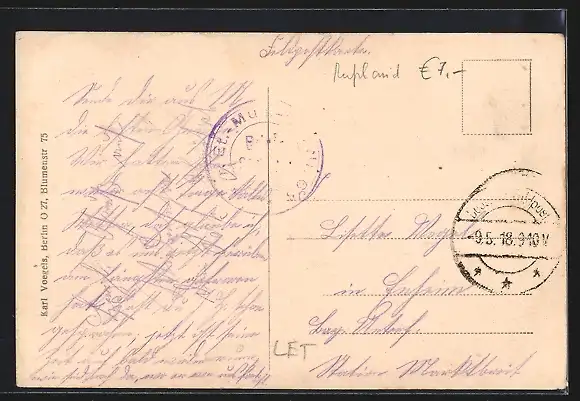 gelaufen 1918, guter Zustand