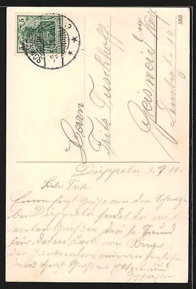 alte Ansichtskarte, gelaufen 1911, Stempelspur, guter Zustand