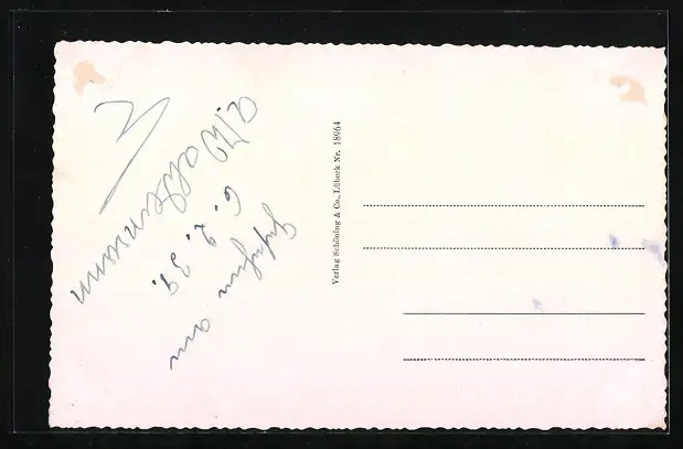 alte Ansichtskarte, ungelaufen, rückseitig Klebe- und Papierreste, rückseitig Oberflächenschaden, guter Zustand