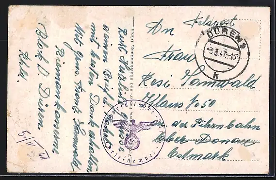 alte Ansichtskarte, gelaufen 1941, rückseitig Oberflächenschaden, Eckknicke re., minimaler Einriss re. unten, guter Zustand