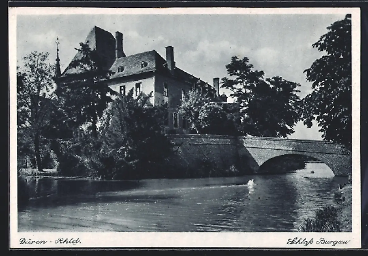 AK Düren, Wassergraben am Schloss Burgau