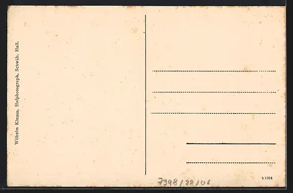 Personenbezogene Daten auf der Rückseite der Karte wurden durch blauen Textmarker unkenntlich gemacht. Die blauen Stellen sind auf die Vorderseite durchgeweicht und wirken sich negativ auf das Postkartenfoto aus