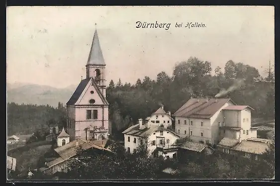 AK Dürnberg bei Hallein, Ortspartie mit Kirche