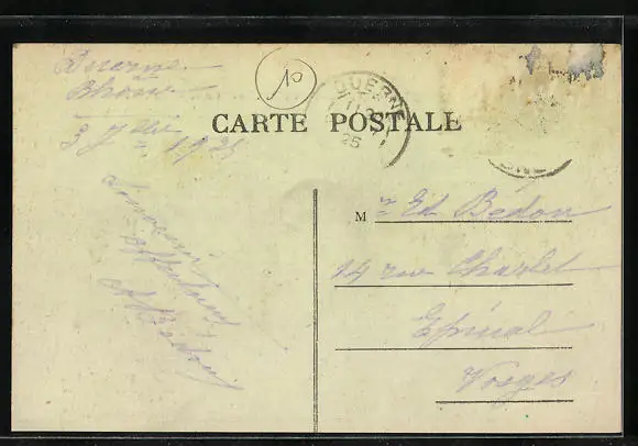 alte Ansichtskarte, gelaufen, Briefmarke entfernt, rückseitig Oberflächenschaden, guter Zustand