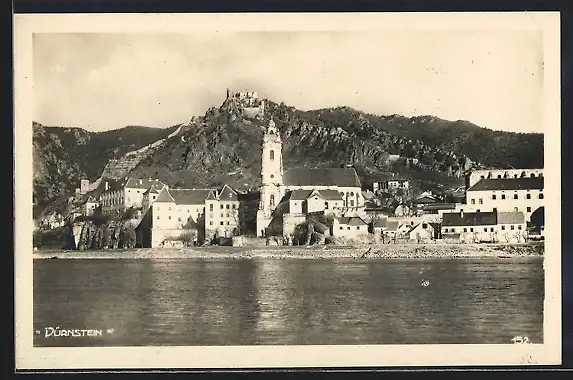 AK Dürnstein a. d. Donau, Ortsansicht mit Burg vom Wasser aus