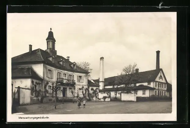 AK Dürrheim, Solbad, Frau mit Kind vor Verwaltungsgebäude