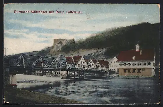 AK Dürrmenz-Mühlacker, Brückenpartie mit Ruine Löffelstelz