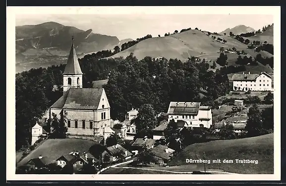 AK Dürrnberg, Ortsansicht von einer Anhöhe, Trattberg