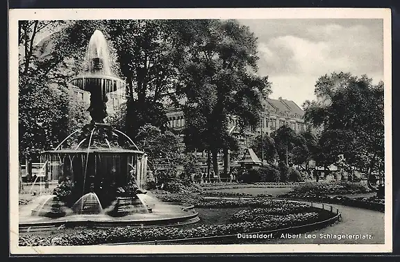 AK Düsseldorf, Albert Leo Schlageterplatz mit Springbrunnen