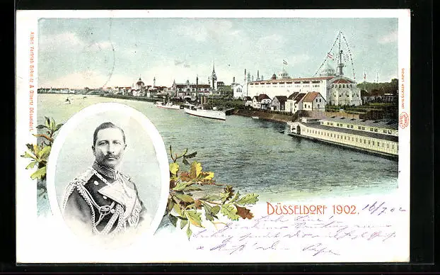 AK Düsseldorf, Ausstellung 1902, Flusspartie mit Dampfern