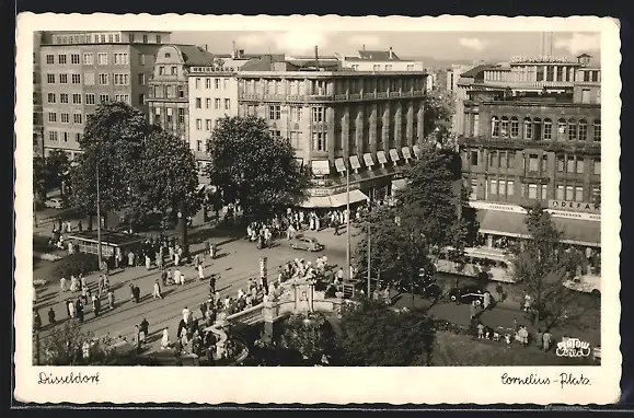 AK Düsseldorf, Cornelius-Platz mit Geschäften